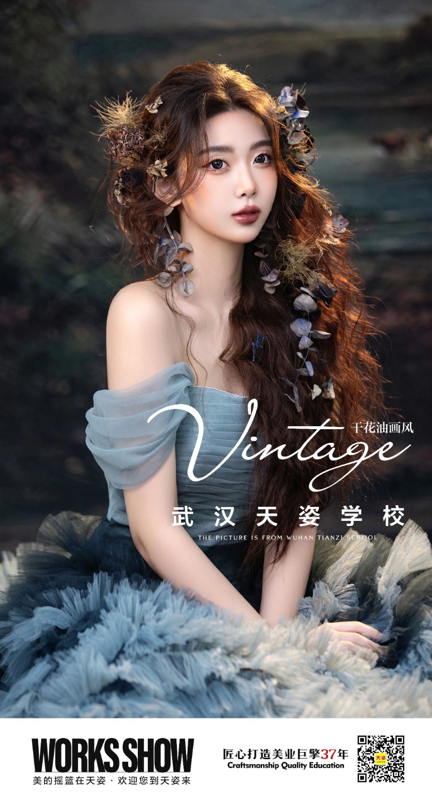 美神降臨&油畫風(fēng)復(fù)古干花造型超蓬松的羊毛卷披發(fā)+復(fù)古妝容,氛圍感拉??